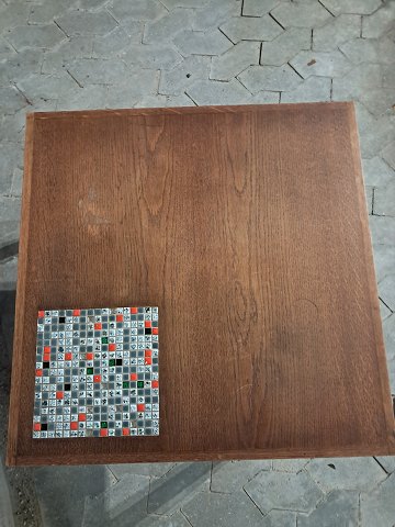 Sofabord i fineret egetræ med mosaik, fra 1970erne.